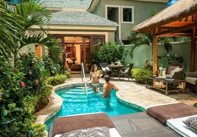 The highest level suites at each Sandals Resort have the best beachfront and oceanview locations. Depending on the suite, amenities include Jacuzzi tubs, large walk-in showers, separate living and bedrooms, private plunge pools, private entrance to "river pools", refrigerator and bar fully stocked with your preferences, and many more upgrades.